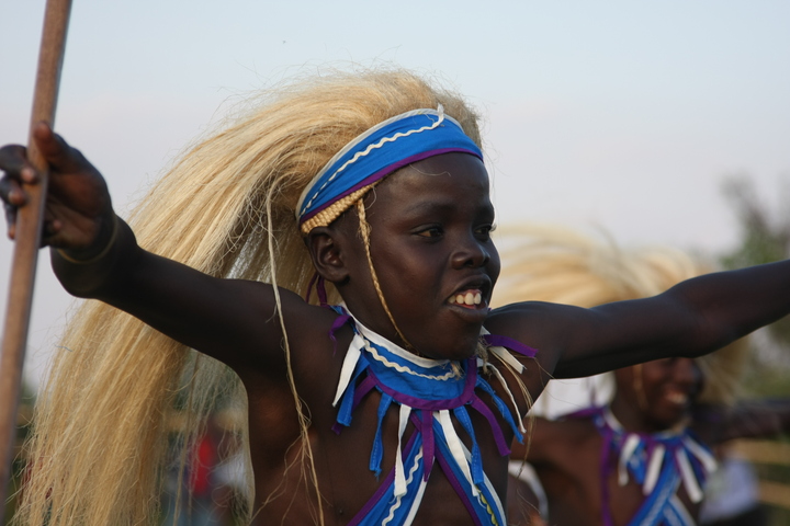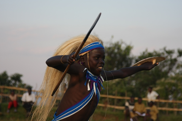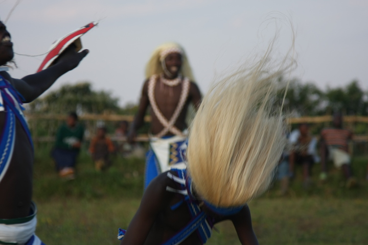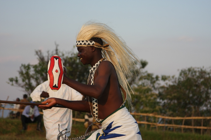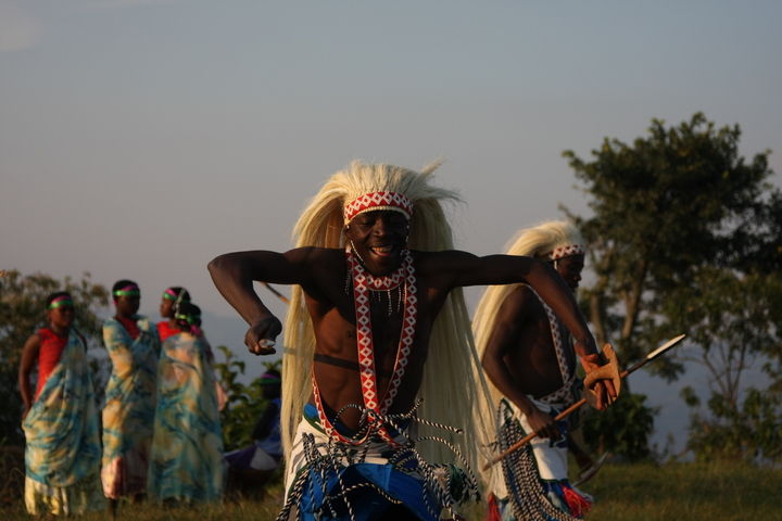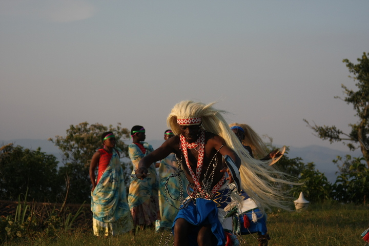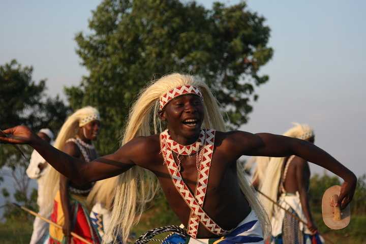 The Intore Dancers from the local village perform for the Virunga Lodge guests