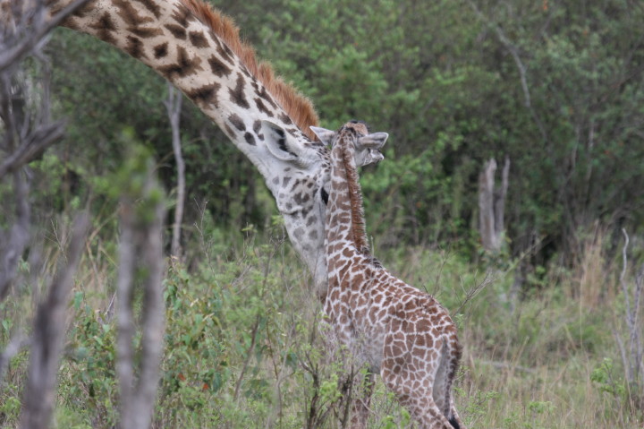 Wildlife: New Born Masai Giraffe and Mother